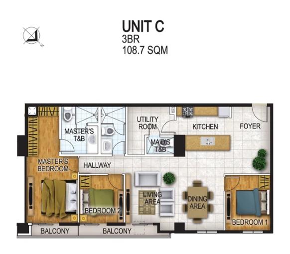Unit Area: 108.7 sqm